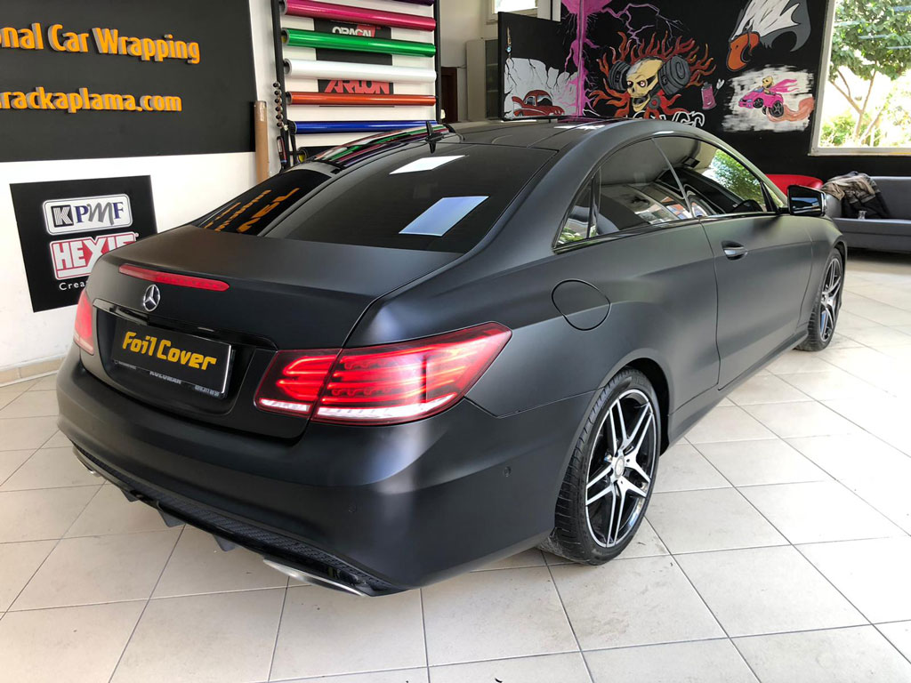 Mercedes E serisi mat siyah araç kaplama